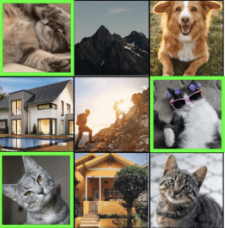 In the Captcha below, the user should have marked in green all images containing cats.
